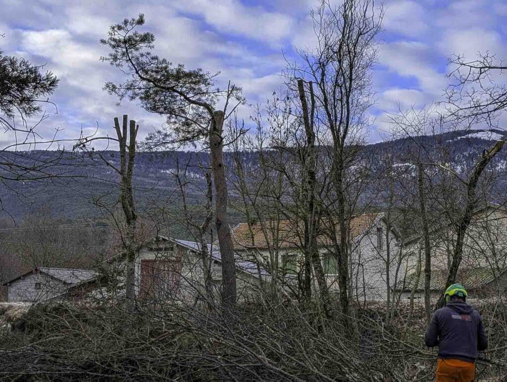 Au préalable, une équipe d’élagage réalisera l’étêtage des arbres (coupe de la partie supérieure) pour préparer l’opération.