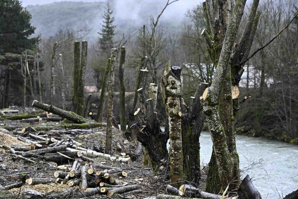 Sus aux déchets dans les milieux naturels, haro sur la pollution anthropique ! Tout cela pour vous annoncer que les travaux d’aménagement du Buëch dans la traversée de la Faurie ont débuté. Première phase : dépollution de la rive gauche en amont du pont de Saint André par l’évacuation d’une ancienne décharge sauvage. Première phase de la première phase : élagage des arbres qui bordent le Buëch. Explications.