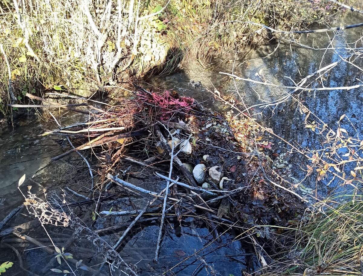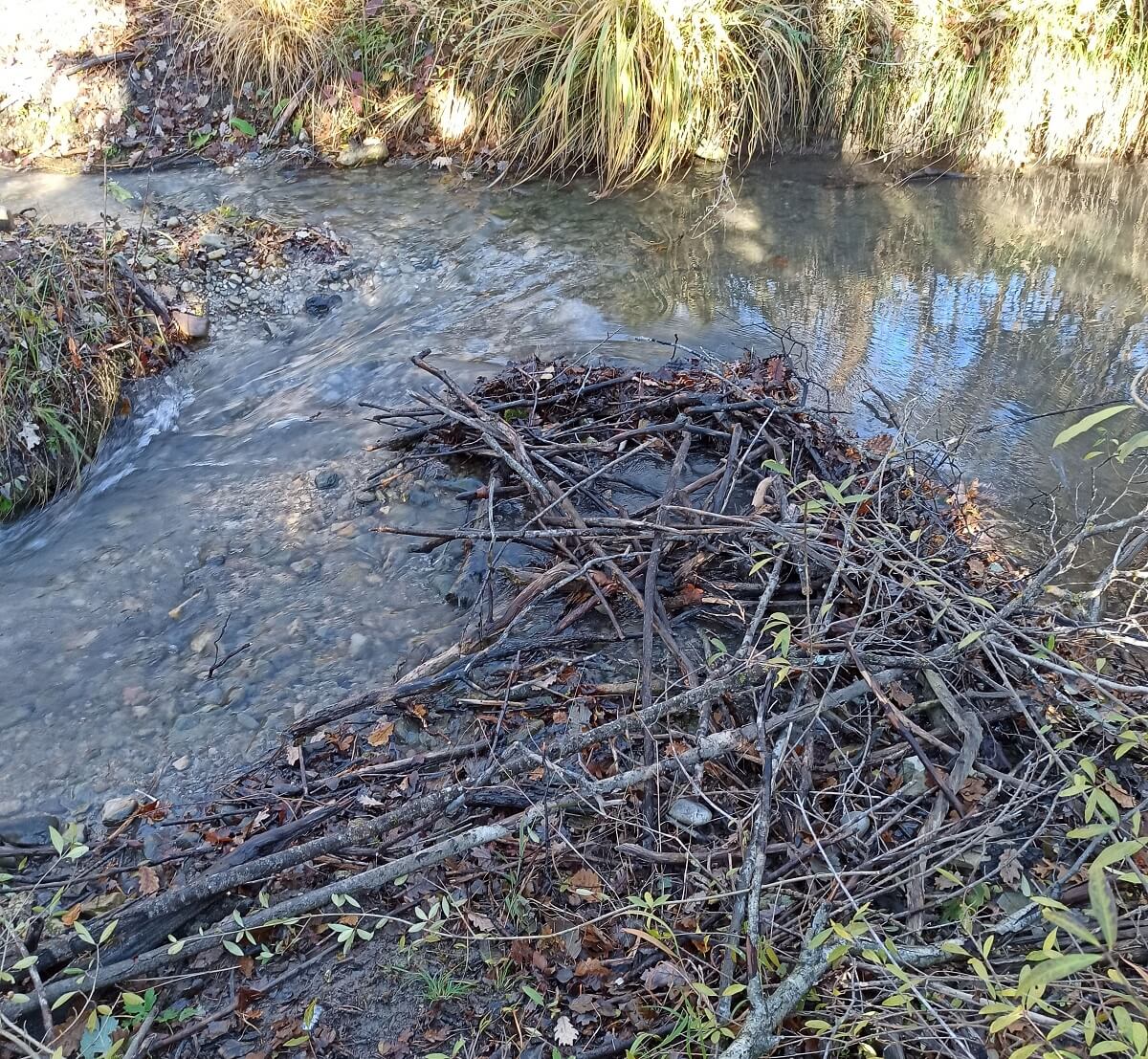 Permettre à un moment clé de la reproduction salmonicole cette circulation piscicole tout en préservant l’enjeu d’habitat pour le castor était alors l’objectif de ces opérations de nettoyage des adoux. C’est ainsi qu’un franchissement piscicole a été sommairement initié sur ces ouvrages de notre ami castor avec l’impérieuse nécessité de ne pas modifier la hauteur de la lame d’eau amont. En effet, deux éléments à la fois techniques et réglementaires commandaient ce fait :