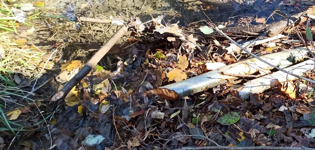 Le reste de l’adoux a eu bien sûr besoin d’un rafraîchissement et la progression a permis de remettre de l’ordre en enlevant quelques embâcles tout en laissant quelques arbres remarquables comme habitats d’insectes, bonne nourriture pour les truites. A part le barrage à l’aval, pas de trace de castor tout au long du linéaire qui était bien alimenté car il y avait de l’eau à la sortie des « Glacières » contrairement à ce que l’on avait constaté certaines années.
